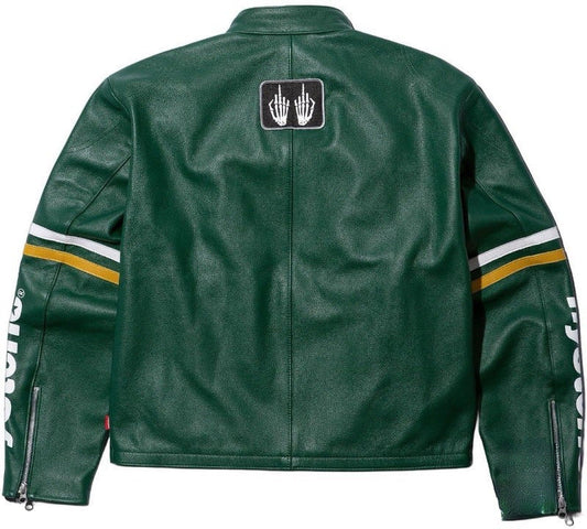 AanbiedingSupreme Green Leather Vintage Racing Jacket